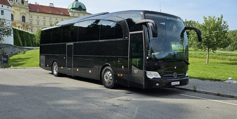 Genießen Sie entspannte Fahrten in unseren komfortablen und top-ausgestatteten Reisebussen – ideal für Gruppen, die sicher und stilvoll gemeinsam ans Ziel kommen möchten.
